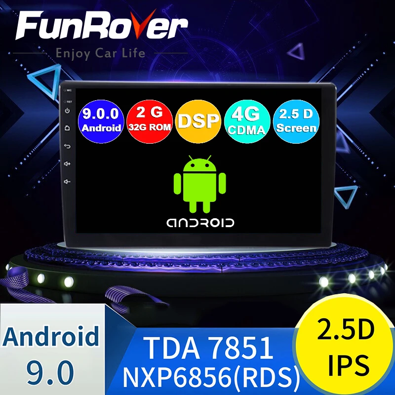 Best Seller Funrover 9/10 inch 2.5D+IPS Android 9.0 Car multimedia radio for universal interchangeable car dvd
