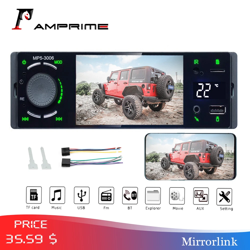 AMPrime Autoradio Car radio 1din 4.1" touch screen auto audio mirrorlink Android stereo bluetooth r